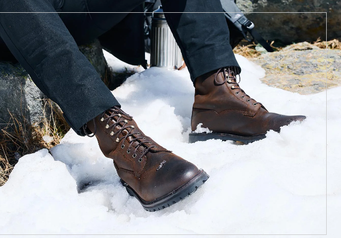 Snowdon is a plain front Derby boot made using the water-resistant Veldtschoen construction. Featuring waterproof oak wax-hide uppers, bellows tongues and heavy duty Commando rubber soles. Crockett & Jones' collection of ultimate winter boots is ready to be worn in the wild, regardless of the destination.