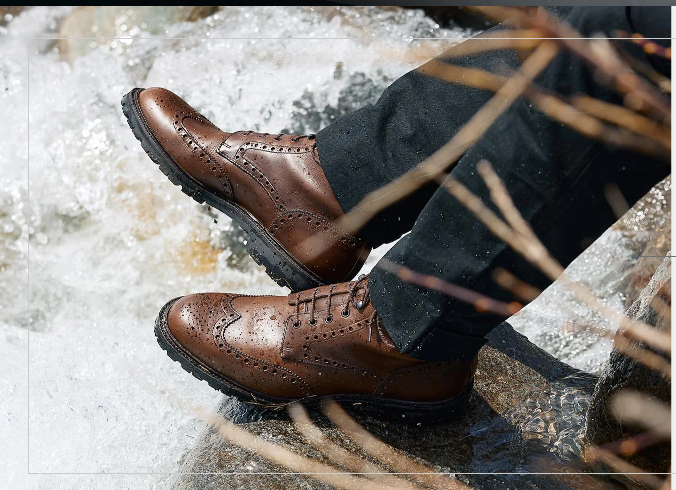 Leather Derby Brogue Boots – Vibram Cleated Sole Country & Winter Walking Boot